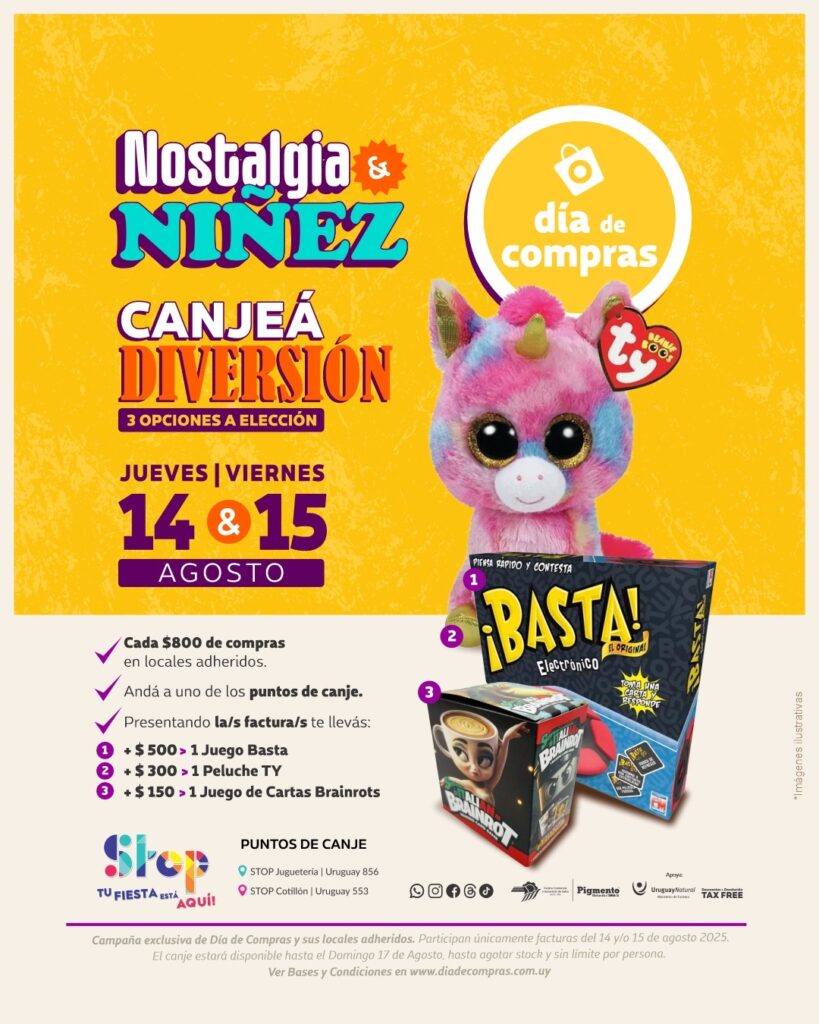 Gracias a la colaboración de STOP Juguetería y STOP Cotillón, esta acción busca premiar a quienes eligen comprar en locales adheridos durante las jornadas del jueves 14 y viernes 15 de agosto de 2025.